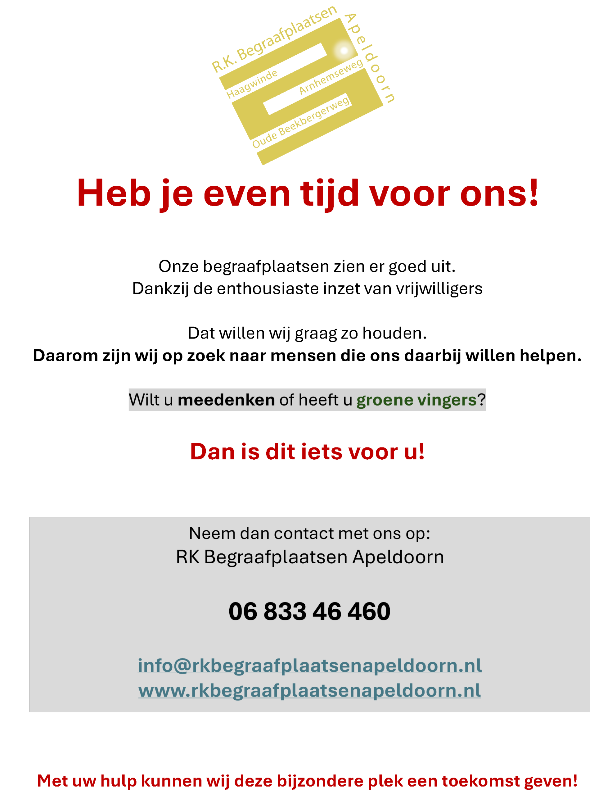 Hartelijk welkom op de website van de R.K. Begraafplaatsen Apeldoorn.
